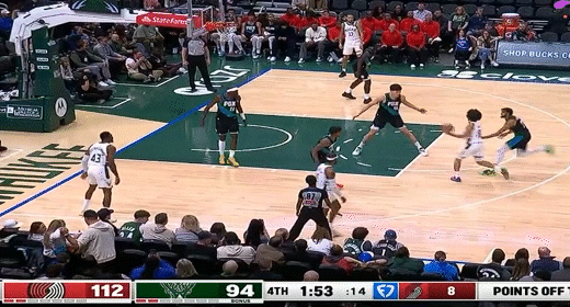 第四节,开节开拓者延续势头克林根内外全开连得5分联手格兰特将分差拉大至28分,雄鹿依靠科尔-安东尼中投艰难拿下2分,开拓者延续势头克林根、乐福相继得分又一波7-0将分差拉大至33分,随后开拓者突然进攻断电,雄鹿特伦特、库兹马、罗林斯相继持续反击一波16-1追至18分分差,但雄鹿没能延续势头继续缩小分差,比赛最后3分多钟双方陆续撤下主力,还剩2分34秒杨瀚森登场,但几乎没有任何机会,最后阶段还被对手打成2+1,全场结束,开拓者115-103雄鹿。